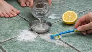 When used as a paste or sprinkled onto grout lines, baking soda helps loosen stubborn dirt while remaining safe for many household surfaces.