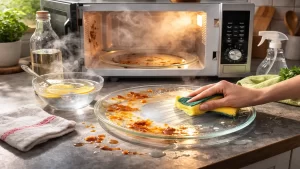 Once the plate is clean, the entire microwave feels fresher. That quick five-minute routine can reset weeks of buildup and make future cleaning easier.