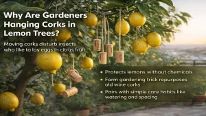 Across balconies, courtyards, and backyard gardens, more lemon growers are tying used wine corks to their trees. Some hang two or three. Others scatter a dozen throughout the canopy. At first glance, it looks like a rustic craft idea. In reality, it’s a low-cost pest control method that many gardeners say makes a visible difference.
