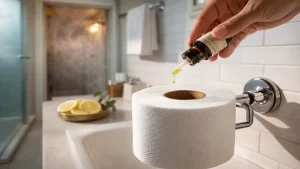 It involves adding a few drops of essential oil to a toilet paper roll core and using steam to diffuse the scent naturally.
